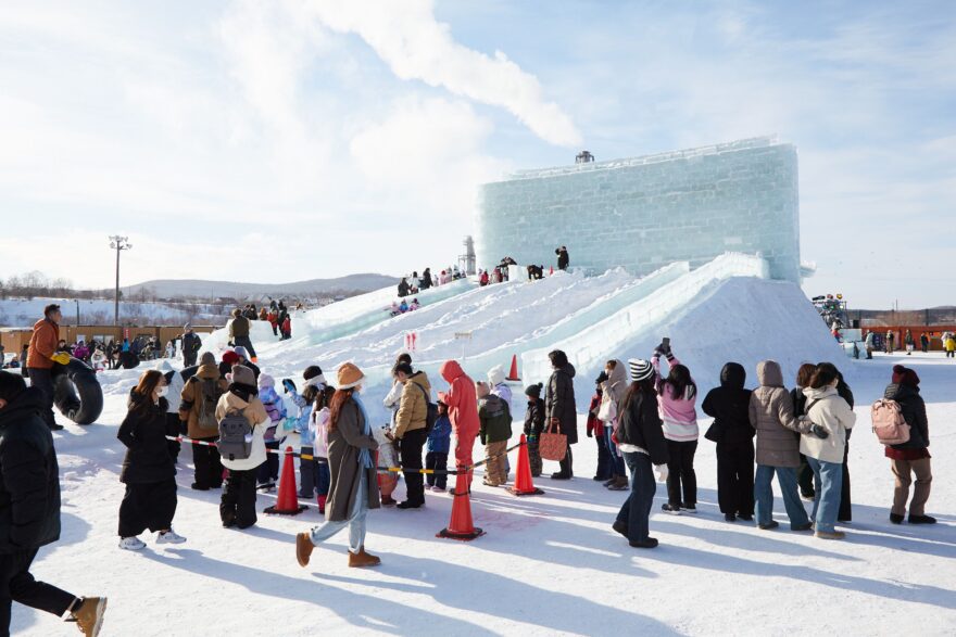 会場では、氷のすべり台やアイスリンク、スノーモービルなど冬ならでは雪遊びが満喫できます。