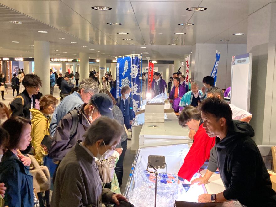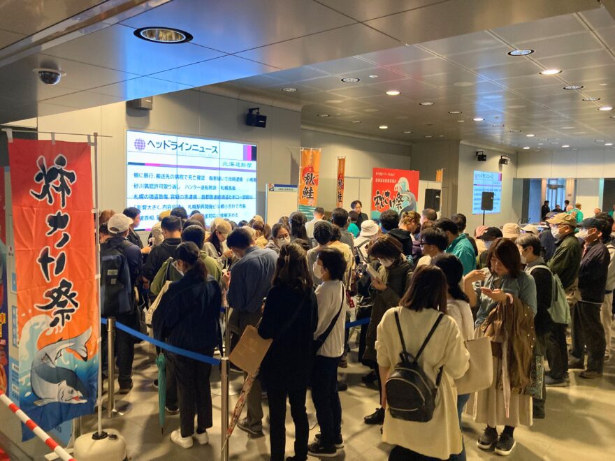 北海道各地から地元の漁師たちが集まり、旬の秋さけや加工品などが販売される