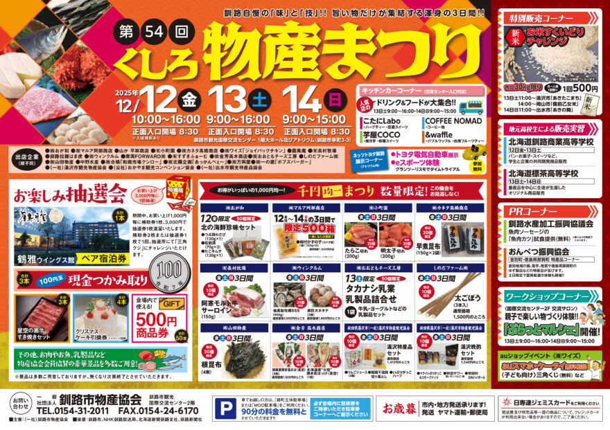 詳しくは、くしろ物産まつりのホームページ、または、Xまで。