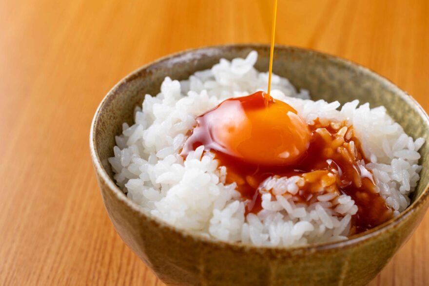 ほかほかご飯の上に卵をのせ、そこに「いくら醤油」をひとかけ。